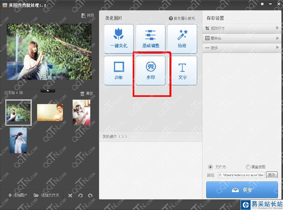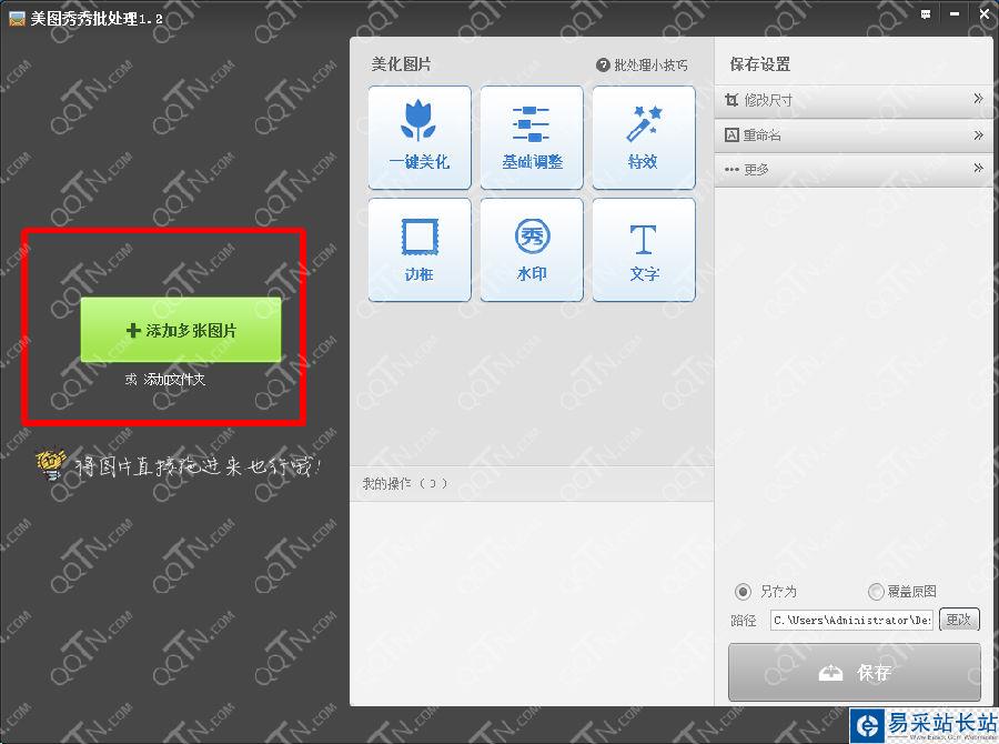3、進(jìn)入到美圖秀秀批處理主界面之后,功能一目了然。
