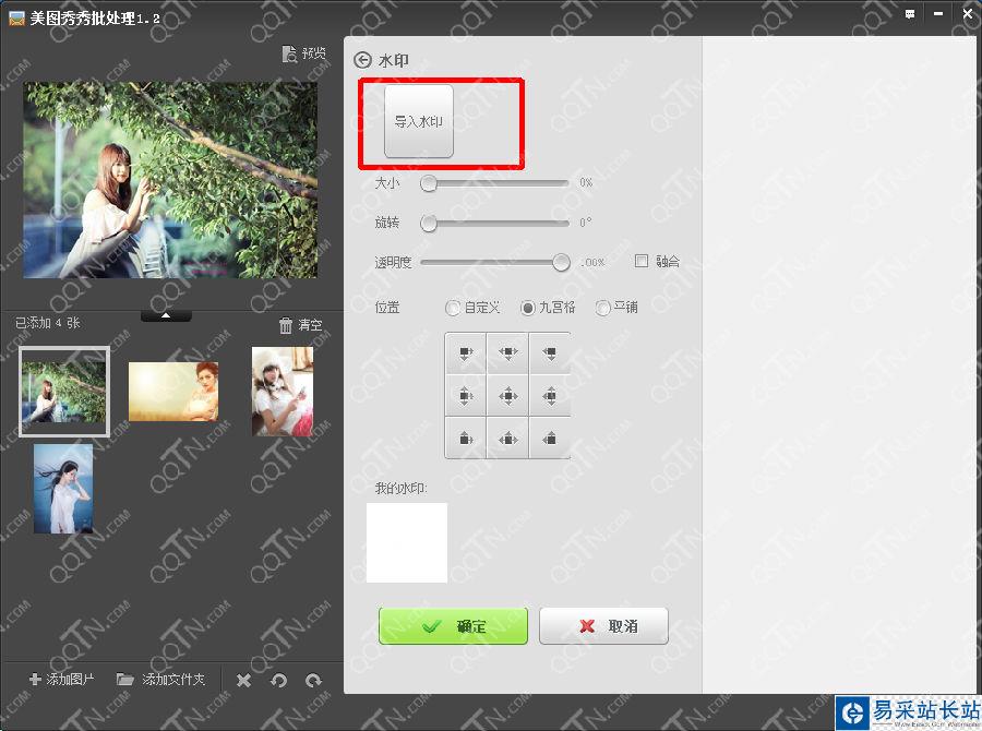 7、導(dǎo)入之后,你可以根據(jù)自己的實(shí)際需要對(duì)水印大小、透明度、位置進(jìn)行調(diào)整。