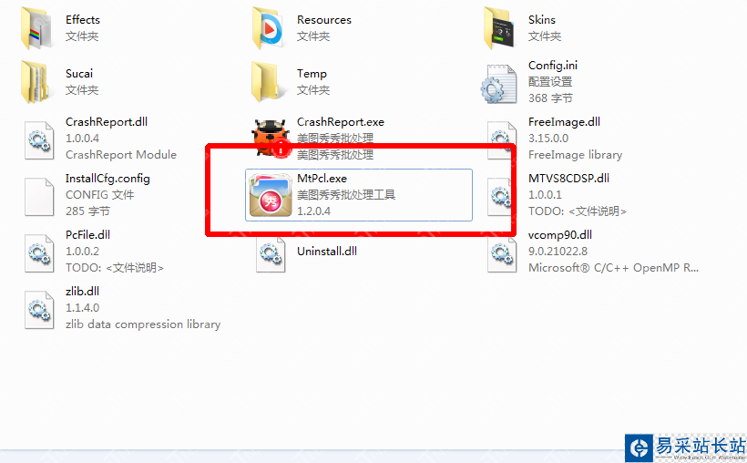 2、如果你下載的美圖秀秀批處理;綠色獨(dú)立版本,將下載的軟件包解壓,如下圖所示,運(yùn)行MtPcl.exe文件,進(jìn)入美圖秀秀批處理工具界面