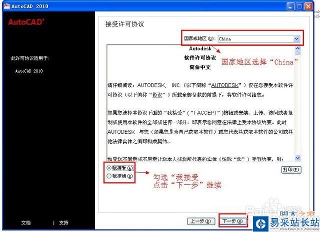 第五步:CAD2010許可協議界面