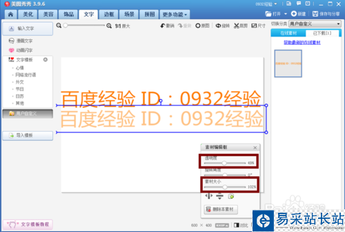 7、調整透明度和字體大小,跟素材大小一樣
