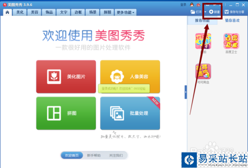 1、打開美圖秀秀,點擊右上方的“新建”