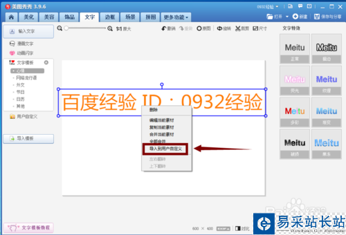 4、輸入后,右擊素材點擊“導入到用戶自定義”