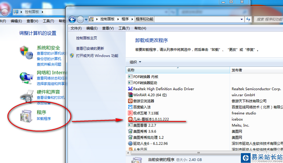 開始菜單===控制面板====卸載程序===選擇 “幾米-看”==右擊卸載。