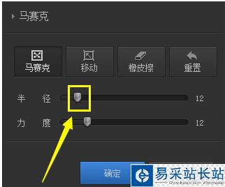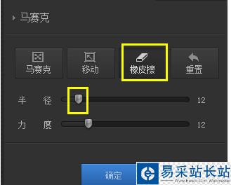 步驟四:想要刪除馬賽克只要點擊“橡皮擦”,設置你想要的“半徑”和“力度”。
