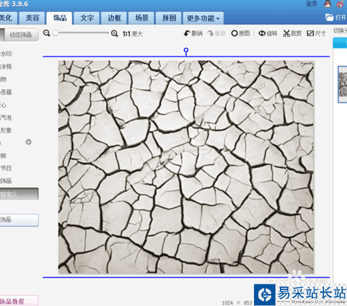 在上方工具欄中,找到飾品工具,點擊。然后在左側下方有一個導入飾品,點擊一下,選擇用戶自定義,導入一張類似石化效果的圖片。