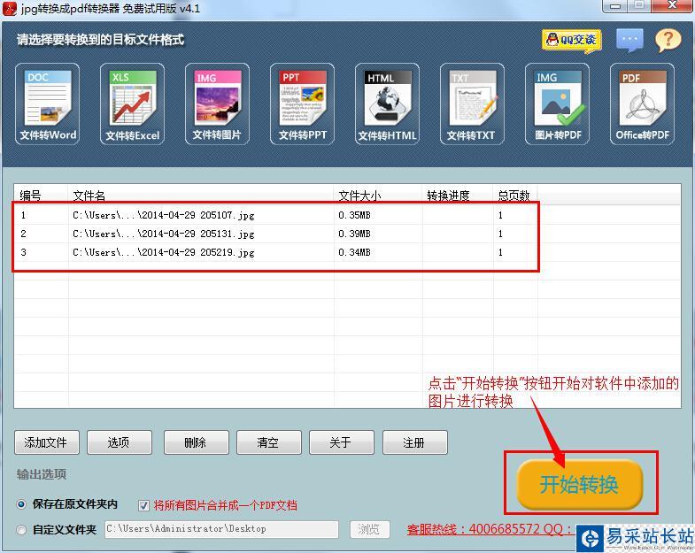 步驟3:設置轉換文件存儲位置,用戶可以將轉換出來的文件保存在原文件夾內,也可以自定義文件夾存儲路徑。這里用戶注意要點選“將所有圖片合并成一個pdf文檔”按鈕,這樣所有的圖片才會生成一個pdf文檔。