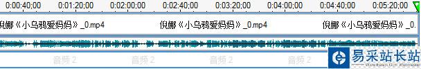 4、下面即是將視頻導入了,同樣的操作,將視頻直接拖入剛才所編輯的后方即可,視頻文件根據其時間而決定其長短。