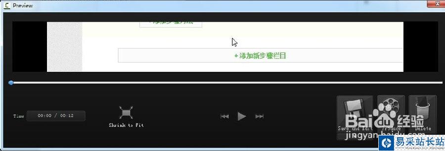 3、停止后,會出現(xiàn)如下預(yù)覽界面,可以看到有三個(gè)選項(xiàng),保存編輯,生成和刪除。選擇save and edit后,我們可以在camtasia studio8 中對錄制的視屏進(jìn)行編輯。