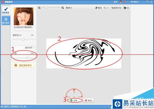 8、選擇力度為50%,以畫(huà)園的方式扭曲,多扭曲幾次,點(diǎn)擊“應(yīng)用”。