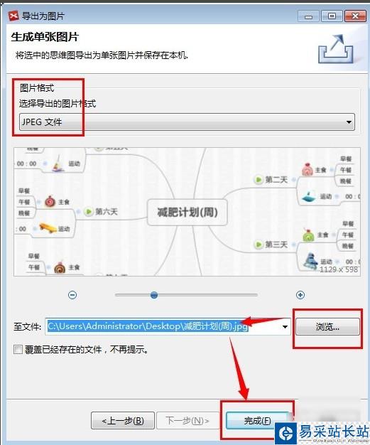 5、圖片屬性,先選擇圖片格式,然后再選擇圖片存放地址,確認(rèn)后,下一步即可保存成功。