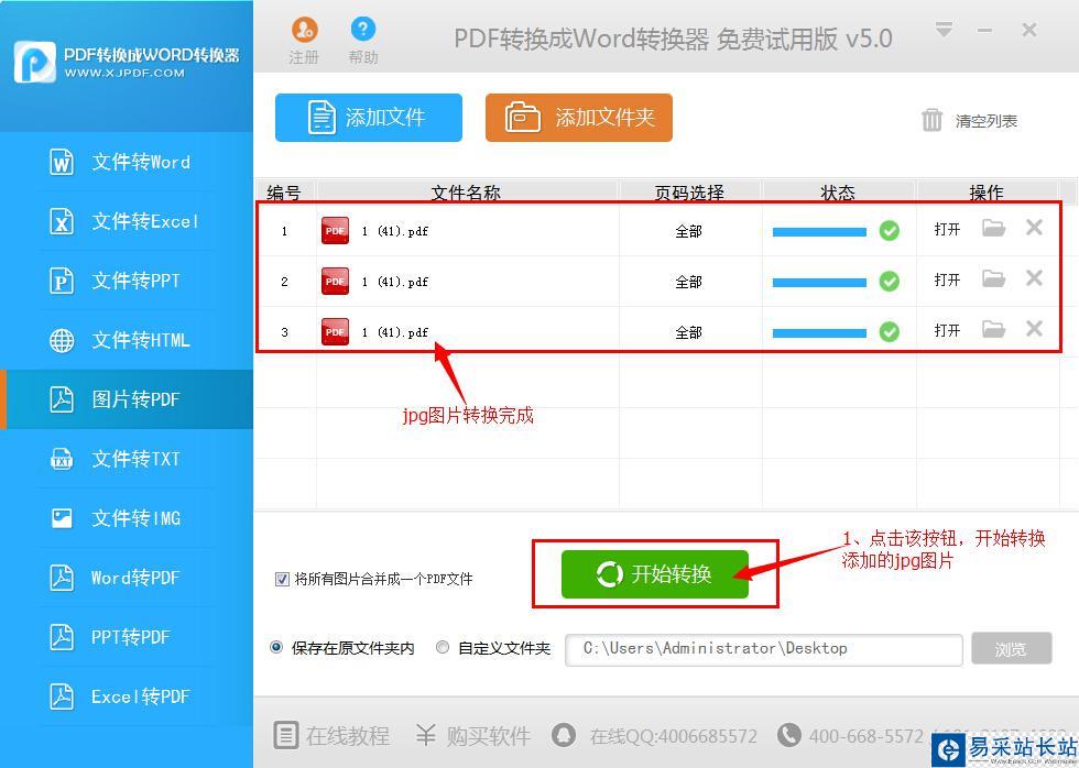 第4步:點擊“開始轉換”按鈕對軟件中添加的多張jpg圖片進行轉換,軟件轉換速度非常快,片刻即可完成轉換。轉換后軟件中的jpg文件全變成了PDF文件。