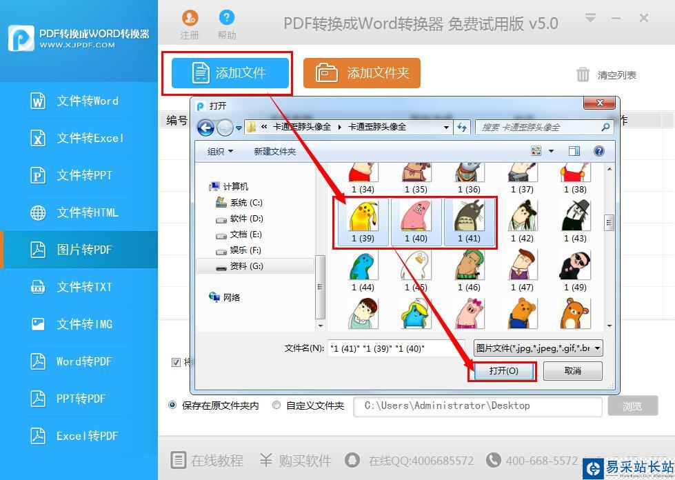 第2步:單擊“添加文件”按鈕,在打開的窗口中找到需要轉換的jpg文件,選中,然后點擊“打開”按鈕將其添加到軟件中。