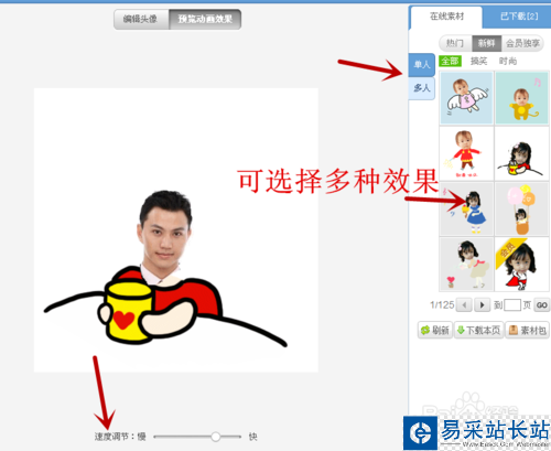 5、摳圖完成,選擇一種特效,點擊預覽效果。可以在右邊選擇多種特效。直到自己非常滿意,點擊保存。