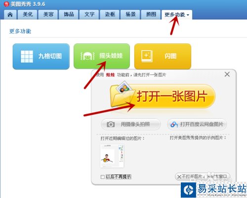 4、點擊搖頭娃,打開一張圖片,開始摳圖。事先,在桌面把制作的圖片保存好。
