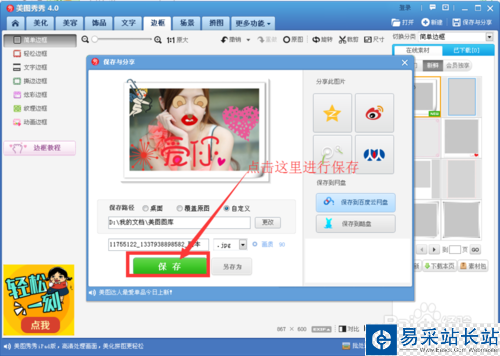 8、最后的關鍵一步當然是保存圖片了步驟很簡單點擊右上角的保存/分享進行保存。