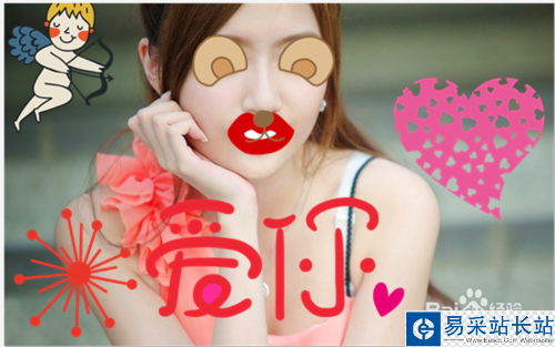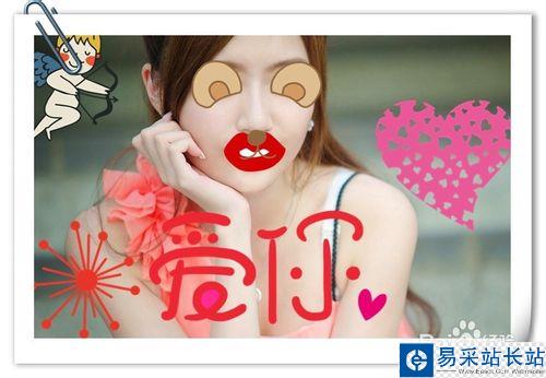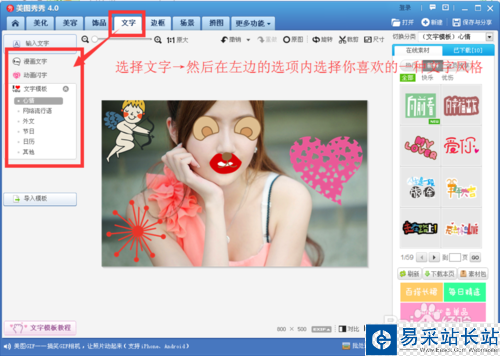 6、添加飾品后就可以添加自己的個性文字了O(∩_∩)O~~具體步驟:點擊文字→在左邊的選項里找到一個你喜歡的文字風格然后打上你喜歡的文字就可以了。