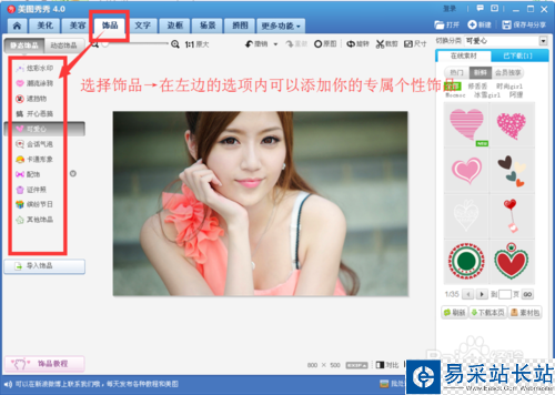 5、進行簡單的美容后就可以再增加一些個性的飾品了具體步驟是:點擊飾品→在左邊的選項中選擇你喜歡的飾品并進行裝飾。