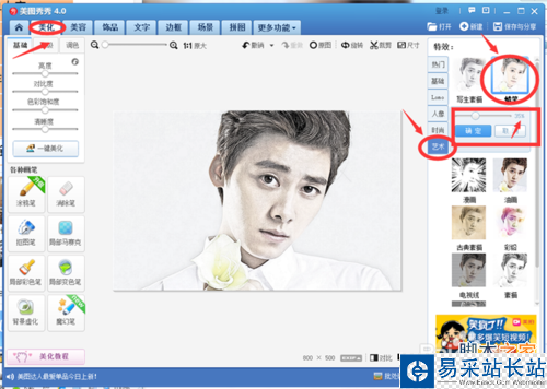3、還是在“美化”選項下,選擇“藝術”--65%“素描”;