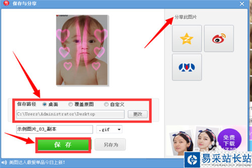 10、然后選擇要保存的位置,也可更改圖片名,再單擊“保存”。你也可以將其分享到你的社交圈。