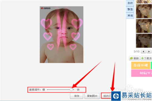 7、我們可以看到圖片下面有一個(gè)速度條,你可以通過(guò)拖動(dòng)它來(lái)改變閃圖的快慢,也可以單擊“修改閃圖大小”來(lái)修改圖片的尺寸。