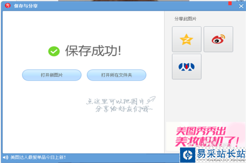 11、保存之后會(huì)彈出如下對(duì)話框,說(shuō)明保存成功了,如果不需要做其他的,那你就可以退出美圖秀秀了。到你保存圖片的位置那里就可以找到你剛制作的閃圖了。