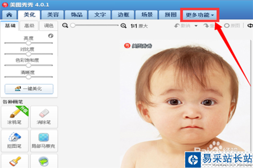 3、圖片添加之后就是如下界面,然后單擊“更多功能”。