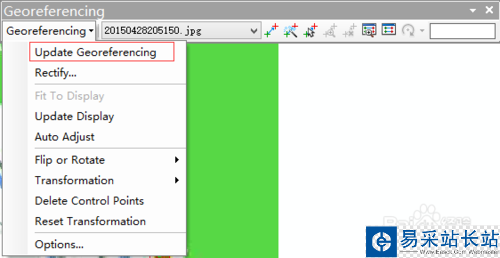 7、效果滿意之后,在工具條下拉框中選擇更新配準(Update Georeferencing),至此影像已配準好。