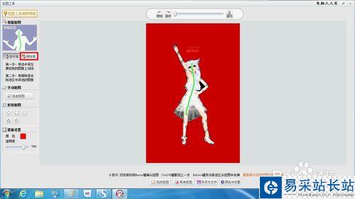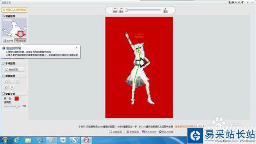 點擊左邊的排除筆,再到需要摳去的部分小心地劃一下(不必太長),系統會自動識別摳除部分的,然后點擊完成摳圖。