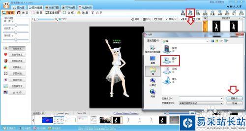 可牛影像軟件快捷工具欄▶打開,再點選電腦中需要摳圖的圖片▶打開。