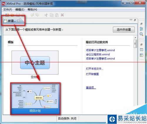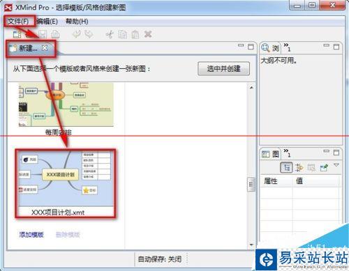 6、再次打開【文件】-【新建】按鈕,瀏覽一下模板就可以看見自己新制作的模板了。雙擊進入即可根據模板制作新的思維導圖。