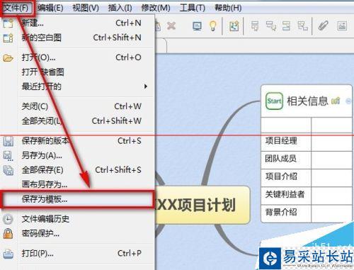 5、按照自己的設想修改后,就可以點擊【文件】-【保存為模板】選項將自己制作的思維導圖另存成模板,方便以后隨時調用,也可以分享給其他人。