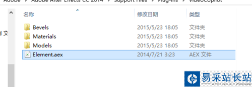 1、先在網上下載element 3D,下載好后安裝到如圖的路徑,一般默認是這個路徑。插件一般都安裝到 plug-ins