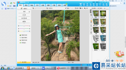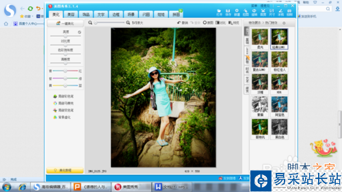 6、這樣基本操作就完成了,如果想加些特效,可以在圖片右邊的特效展示中選擇自己喜歡的特效,例如經典lomo效果,覺得合適點擊右上角“保存”就可以了(額,個人照片,不喜勿噴)。