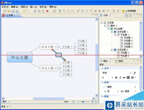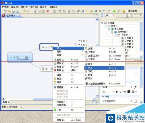 7、如何在兩個主題之間插入鏈接呢?同樣用右鍵,然后選擇“插入”-“聯系”,這樣你就可以看到下面的效果了