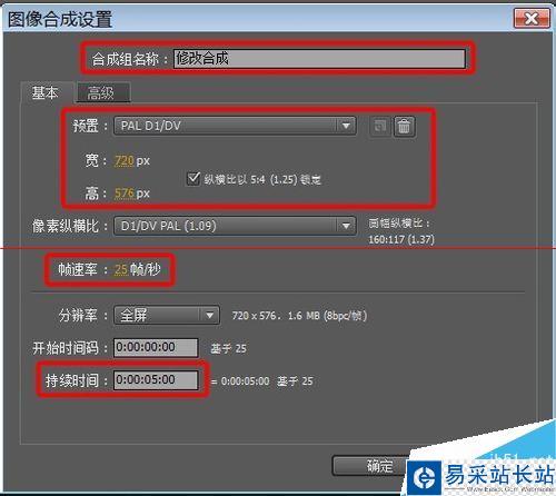 2、新建合成組,使用基礎(chǔ)參數(shù)即可(如果各位使用的參數(shù)與我不同也無大礙)。