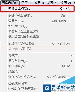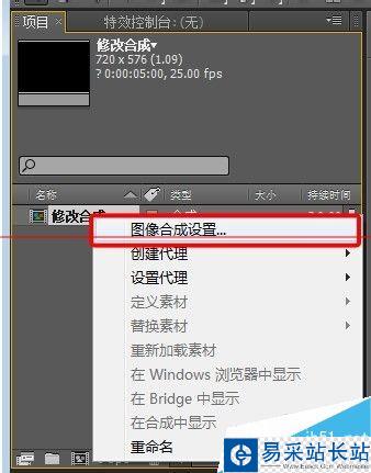 3、重新修改參數(shù)設(shè)置方法,合成組上單擊右鍵——選中【圖像合成設(shè)置】,如圖。