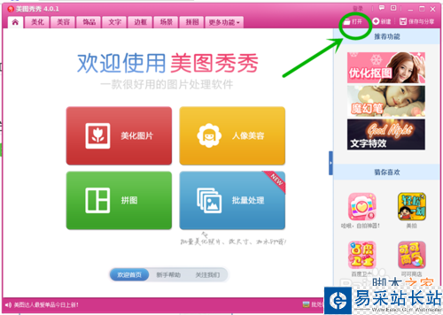 點擊右上角的“打開”即可,我用三順的照片給大家做個示范~