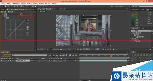 3、我們添加曲線。具體的步驟:在效果和預置的工作區的搜索欄輸入“曲線”,我們添加色彩校正下的曲線。如圖。注意,你如果沒有發現效果和預置的工作區就去窗口那里找。