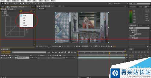 4、在曲線的工作區,我們不要選擇RGB,點擊它,會出現個列表,我們選擇想要的顏色。
