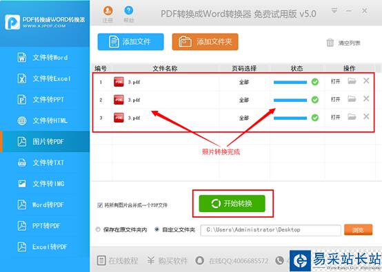 五、最后,用戶僅需點擊軟件上的“開始轉換”按鈕,便可快速實現批量照片的轉換,軟件轉換成功后我們可以看到轉換成功相應的提示。