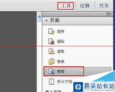 1、使用 Adobe Acrobat X Pro 打開(kāi)pdf文檔之后,點(diǎn)擊右側(cè)的 工具,裁剪: