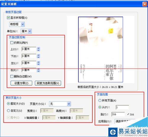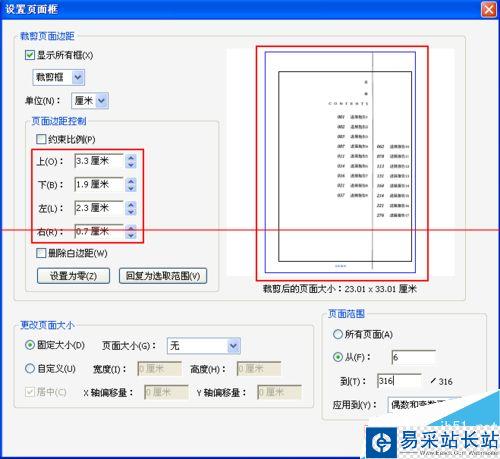 2、根據(jù)需要對(duì)如下標(biāo)注的位置進(jìn)行設(shè)置,點(diǎn)擊 確定,即可將選中的頁(yè)面批量裁剪: