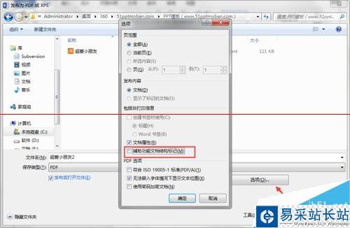 2、徹底解決的方法,在導出pdf的時候,如圖窗口,點擊【選項】,取消勾選“輔助功能文檔結構標記”,保存后再發布,這樣就不會出現圖片路徑了。