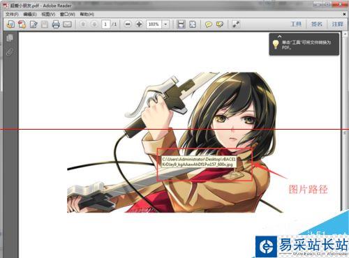 1、如圖,用Adobe Reader打開pdf,能夠看到圖片的原路徑,如何設置能夠避免顯示圖片路徑呢?一個自欺欺人的方法,就是用其他pdf閱讀器打開,我用極速閱讀器打開就沒問題。