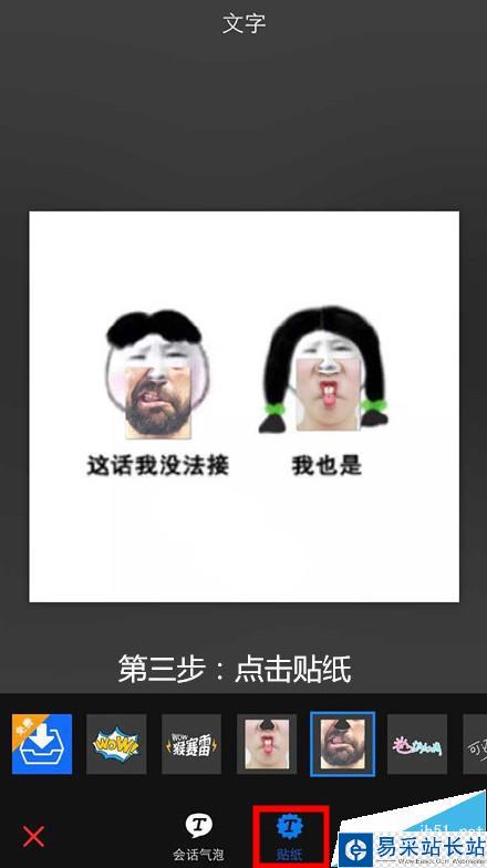 3.切換貼紙功能,找到下巴貼紙。