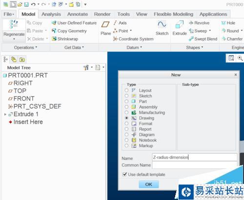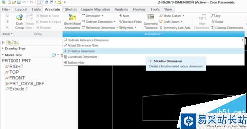 1) “Annotation”下拉選項卡,選擇“Z-Radius Dimension”