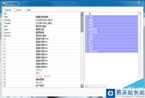 2、這里要提醒一下的是 在Sai中,你不能自己配置按鍵組合,因為它默認已經將鍵盤上大部分可以用的按鍵組合都內置了,你需要做的就是給某個按鍵或按鍵組合指定一個快捷功能。