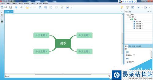 4、修改中心主題內容,并給其添加四個子主題,如下圖所示: