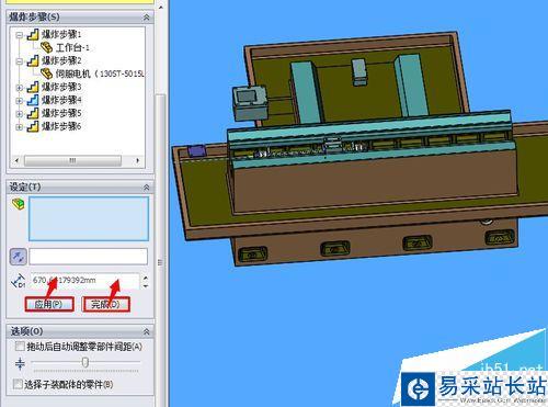 4、按照上述的方法可以依次對(duì)零部件進(jìn)行修改,在爆炸參數(shù)中會(huì)顯示依次拖動(dòng)的步驟,通過(guò)編輯可以對(duì)步驟進(jìn)行修改